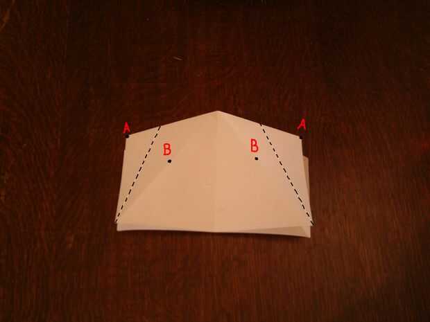 4. doble a lo largo de la línea de puntos para unir el punto al B, y luego repita al otro lado del papel.