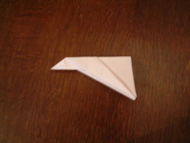 2. ahora debería verse como esto. Doblar cada 'wing' hacia fuera horizontalmente alrededor del lugar que se muestra en la fotografía.