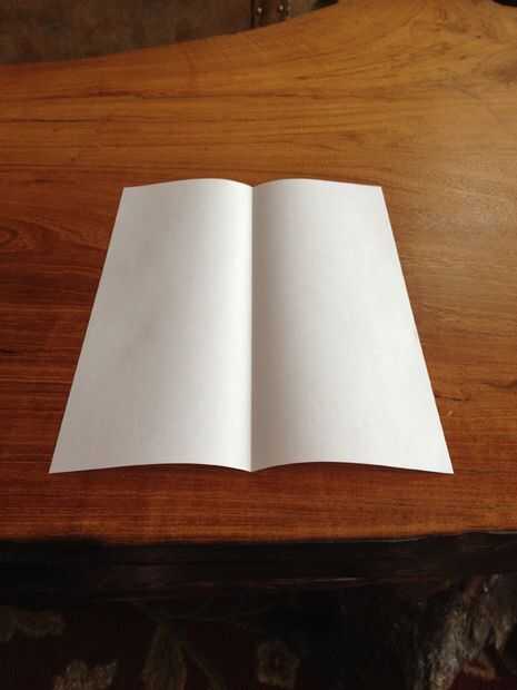 Primero, carpeta de la pieza de 8" por 11 1/2" hoja de papel perfectamente en medio. Me parece muy útil para repasar el pliegue con un bolígrafo o un lápiz borde para hacer el pliegue bonito y fuerte. Después de doblar el papel por la mitad abre.