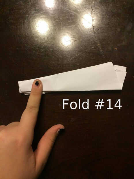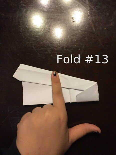 Doble #13 - todo en la mitad exteriordel doblez. Desea que todas las aletas de papel en el exterior del avión. (En este punto, plegable puede ser complicado por el grosor del papel, sea paciente.)