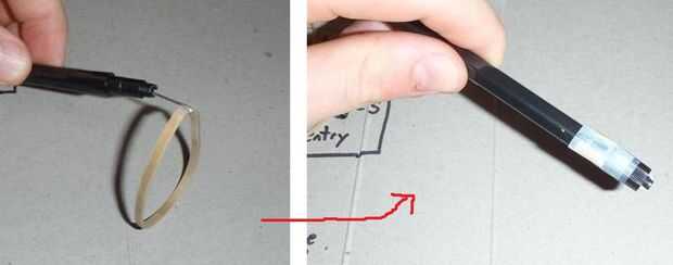 - El clip a través de la punta del eje del lápiz del hilo de rosca