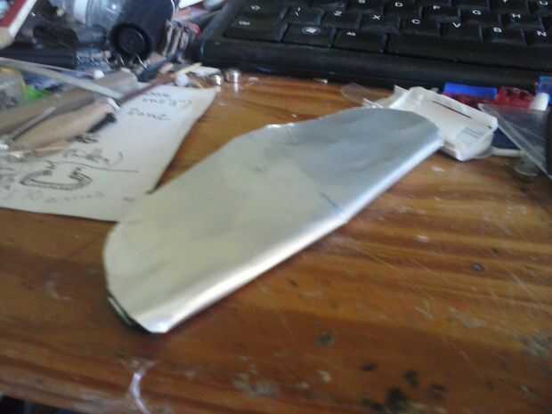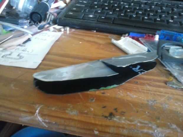 No corte el borde de ataque. Corte 2 ranuras en la pieza superior del ala, cada uno de 2 mm de la línea central.