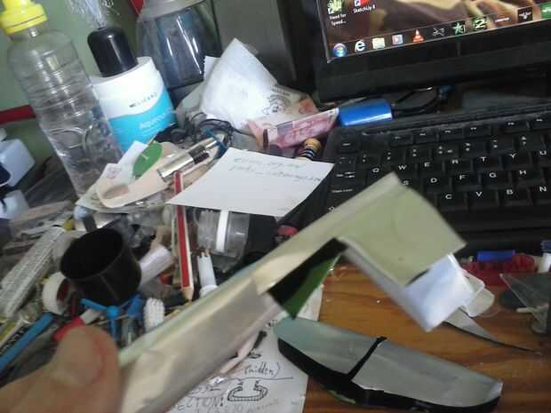 Por último, colocar pegamento a lo largo de la parte inferior de un lado del fuselaje y presione el otro lado sobre la misma hasta que el pegamento se seca. Esto también se ilustra en las dos últimas fotos.