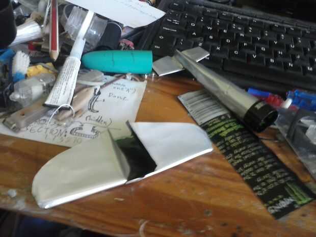 Estas aberturas deben ser apenas lo suficiente para que encajen el fuselaje medio. Estos se pliegan y porque el fuselaje se afina, la parte posterior no es necesario tener como grande un boquete.