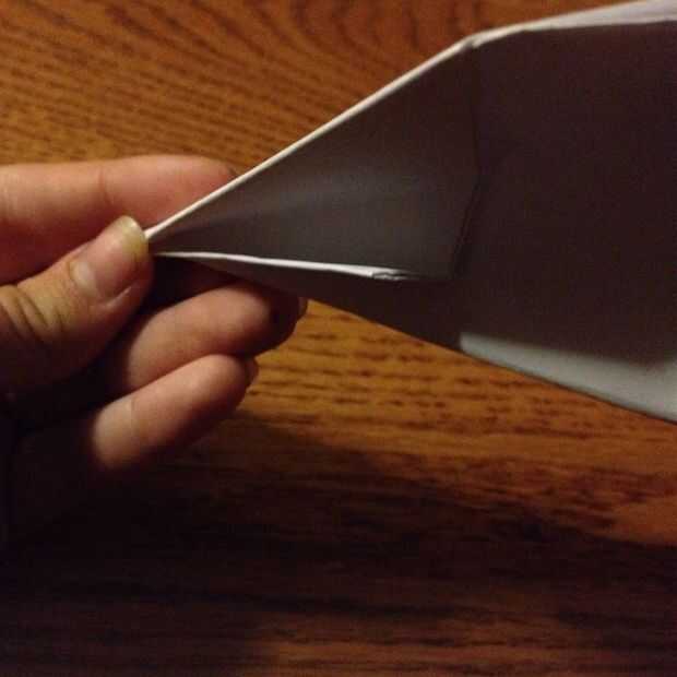 Doblar las alas laterales más pequeñas sobre sí mismo y desplegar así que crea un pliegue. (Está bien si son exactamente lo mismo)