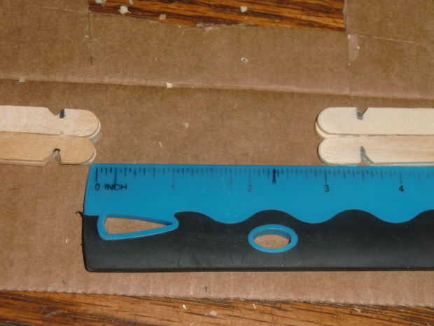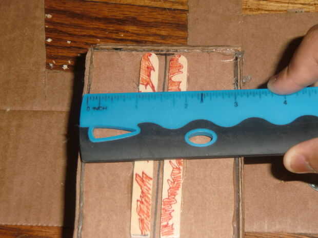 2. Con el pedazo marcado de papel, poner sus miembros de ballesta que hiciste en el papel marcado. Asegúrese de que el espacio entre ellas es la longitud correcta.