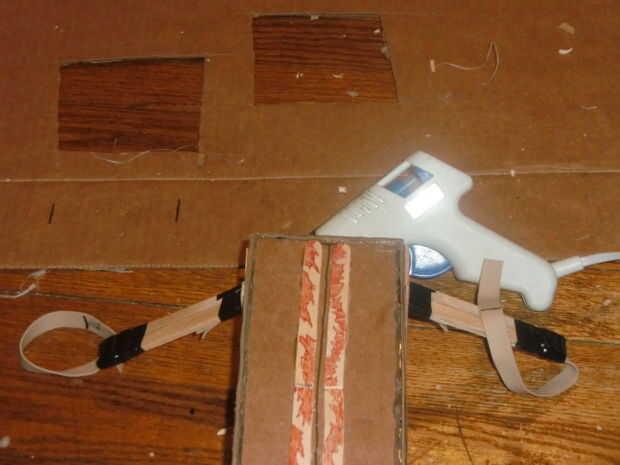 3. Introducir las extremidades del arco dentro de los dos agujeros en el lado de la caja de cartón (que hace en un paso anterior). La doble banda de goma se oculta dentro de la caja. Debe buscar como la tercera foto de arriba.
