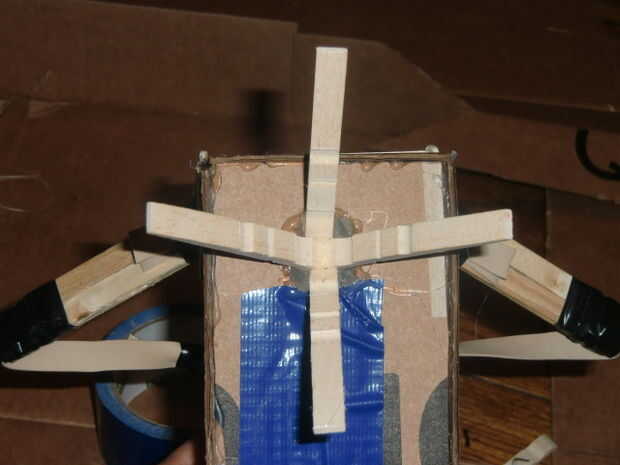 5. Voltee su ballesta para el agujero que hiciste en la parte inferior hace unos pasos. Inserta la parte superior del triángulo en este agujero y utiliza el arma de pegamento para colocarlo en. Asegúrese de que el stand se ve y funciona de la manera que desea antes de pegarla en.