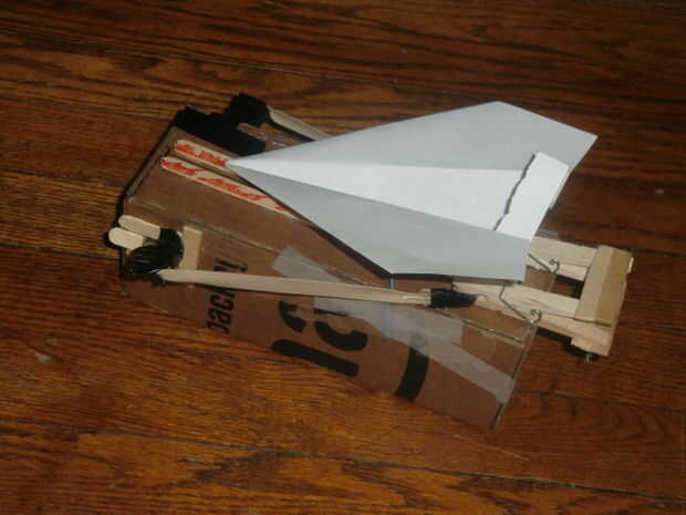 con una pilas de lanzador de avión de papel, fácil de construir por los niños de unos 6 años, con una pequeña preparación antes (algunos soldadura y pegado de fusión en caliente). Dará a aviones de papel plegado normal una velocidad con alimentación