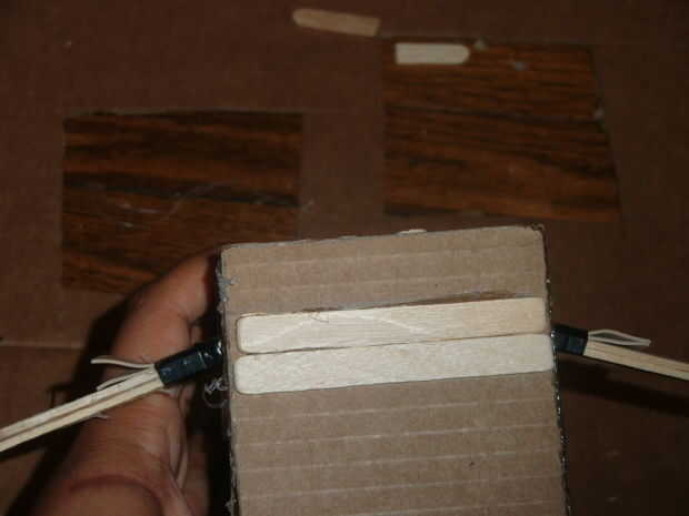 4. Reforzó la parte delantera y lateral de los agujeros de bowlimb con arte de palos para que la cepa no rasgar el cartón.