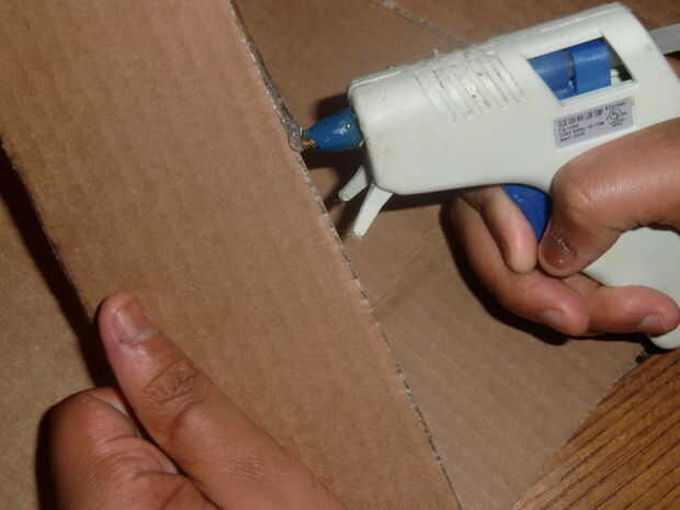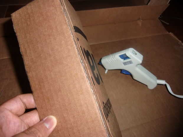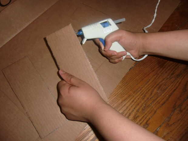 1. Después de tener las piezas de cartón, pegamento todos los 9" por 3" piezas para formar una caja rectangular.