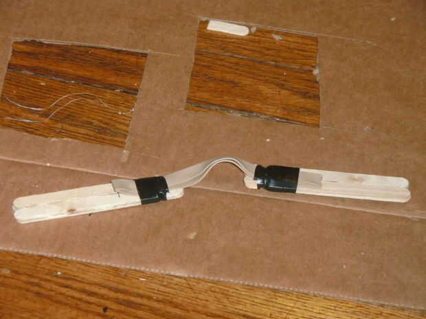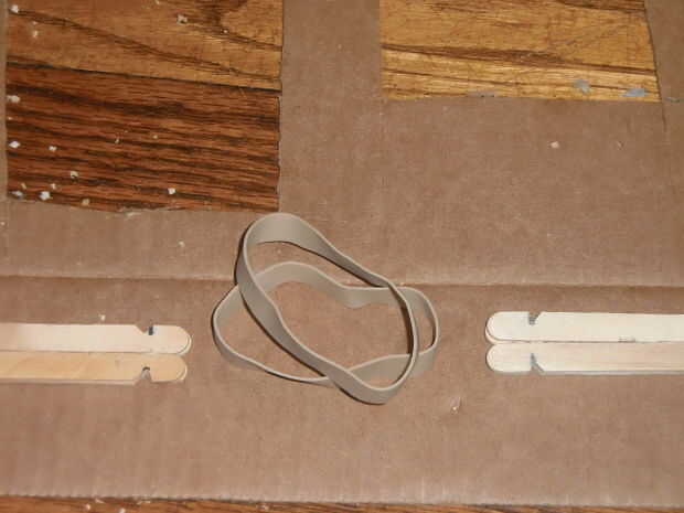 2. Dibujar las marcas en los extremos de los palitos. Esto es donde la banda de goma. Las marcas deben ser aproximadamente 1/2" del borde del palillo de arte.