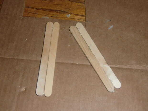 4. Ahora, pegue un par de palitos en la parte superior el otro par. Hacer lo mismo con los dos últimos pares. Ahora debe tener dos conjuntos de palitos.