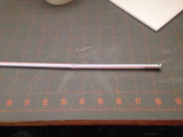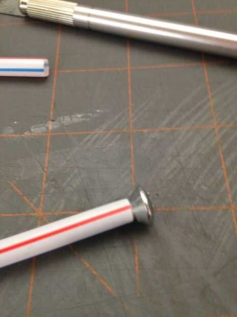 2 Haz de paja, los corte a la longitud. Obtener un tornillo para el peso. Esta es la parte delantera en pegamento. A continuación abollar el otro lado en la otra paja. Pulse y pegamento. Fuselaje se hace.
