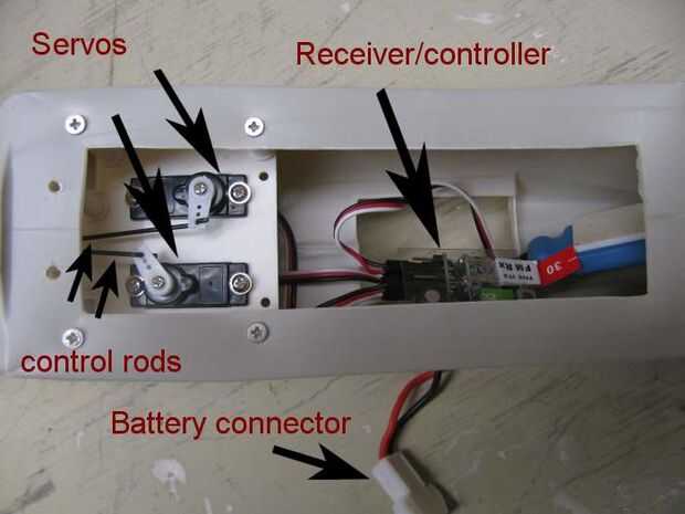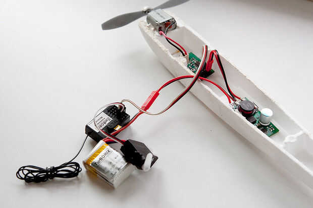 Ahora que tienes todas las partes, que son capaces de juntar las partes. El primer paso es abrir el cuerpo del avión donde se todo. Comience por colocar la batería, el variador, receptor y servos (ver la imagen con piezas que se indican dentro para la instalación de los servos). dentro del cuerpo. Canal tu Lego construcción de conocimientos y conecte los cables que parecen como conectarían, básicamente, fijar piezas a donde caben. Una vez que ha hecho te puede atacar su motor a su punto motor señalada en el cuerpo, a continuación, conecte el motor al regulador. Una vez que se asiente el motor (si no cabe, usted puede llenar un espacio con epoxy para mantenerlo en su lugar, pero si la zona donde va el motor, usted debe de MacGyver y cortar un agujero para hacer el ajuste motor. No te preocupes acerca de cortar el agujero demasiado grande como siempre usted puede llenar con epoxi). Las barras de control de servos deberían llegar a los ascensores (consulte el diagrama sobre la ubicación de los ascensores). Después de instalar los servos, necesita fijar las hélices del motor. Una vez hecho esto, usted necesitará cortar tus alas del tablero de la espuma, si el tablero de la espuma no es lo suficientemente delgado para caber a través de una ranura puede que tenga que forzarlo, o cortarlo más fino para que pueda caber. Por ahora usted debe ser capaz de probar su avión, encienda el controlador, conéctelo a su receptor y probar tu avión!