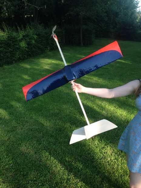 Para una tarea de la escuela, tuvimos que diseñar un aeroplano. Tuvo que volar lo más lejos posible, o tan largo como sea posible. Me asignaron este último. No podíamos usar bateria o motorizadas. He utilizado un sistema de cuerda.