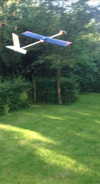 Deslice la hélice sobre el tubo de aluminio y enrollar para arriba el sistema. Ahora puede probar el avión!