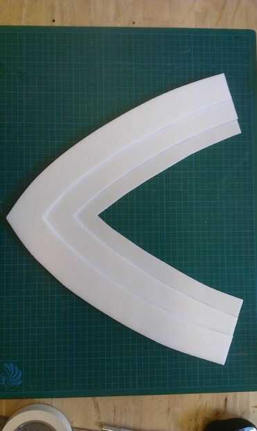 Lijm met het lijmpistool de delen mooi aan dirección, de plak met het stevige plakband (doorzichtige, plakband brede es geschikt). Zo wordt de vleugelvorm gecreëerd.