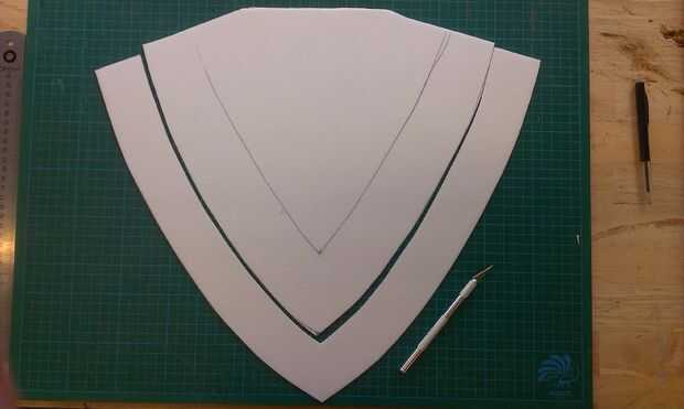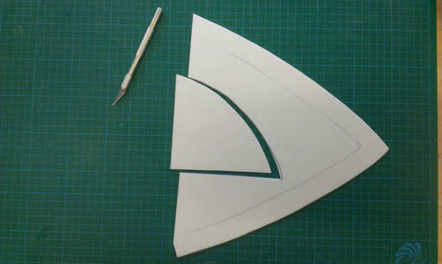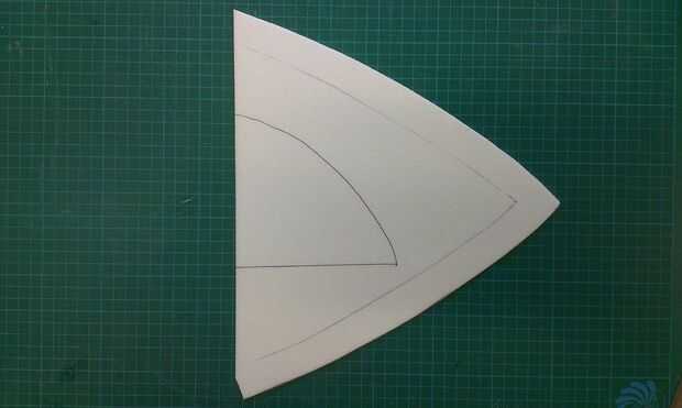 Neem de overschot van het 3e deel van de vleugel en teken daar een kleinere vin op. Dit snijd je uit.