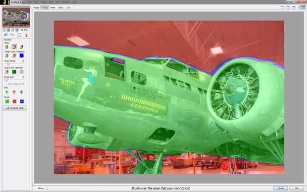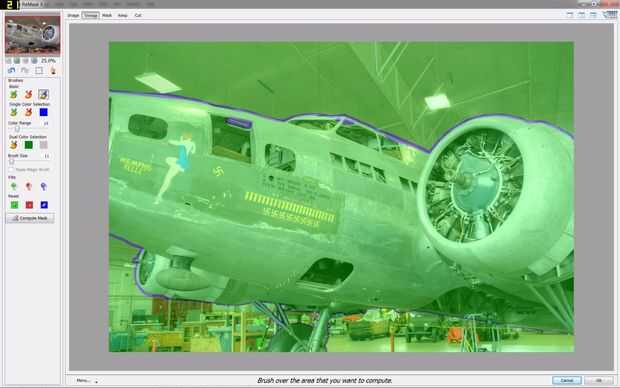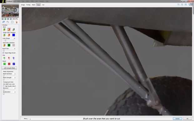Poner tu imagen en Topaz Remask y proceda a marcar cada borde de la frontera y las áreas que desea eliminar con el cepillo de cálculo. El cepillo de cálculo se utiliza en los bordes entre corte y guardar las partes de las imágenes. Tiene algoritmos adicionales que determinar los bordes de lo que desea guardar el software.