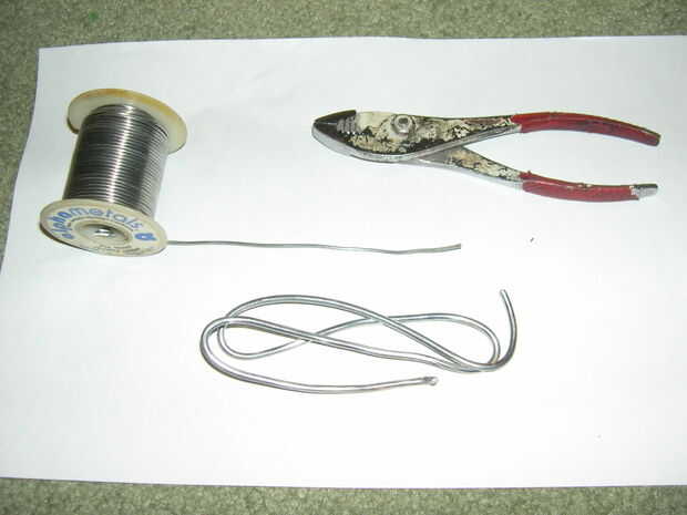 necesita pinzas que pueden cortar el alambre, el alambre (soldadura de plomo, consigue en Ferreterias) y una banda elástica para lanzarlo