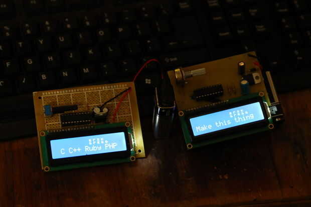 Así, ahora que termines, tendrás un pleno funcionamiento exteriormente de LCD se puede personalizar! ¿Lo guay es? Ahora tengo 2, ya que hice uno en protoboard y luego se lo llevó a un PCB grabado al agua fuerte. Yo podría agregar a algún tipo de recinto al averiguar lo que quiero hacer. Hay un recinto transparente de Lexan realmente Instructable quiero probar...