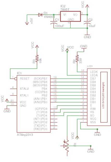 aquí está el diagrama del circuito de interface 16 X 2 LCD al Microcontrolador AVR. En este circuito, el oscilador de cristal dará el reloj en el microcontrolador. Los condensadores conectados a la voluntad de cristal actúan como filtros y ayudar el