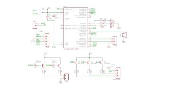 - Diodo de la linterna - sólo un LED muy brillante, que tiene dos propósitos. En primer lugar, cuando el jugador dispara, este diodo se enciende para arriba en dos veces el máximo brillo, pero para sólo un corto período de tiempo. Esto no daña el LED y simula flash del bozal del arma. Y, con PWM, se puede también utilizar como una linterna.