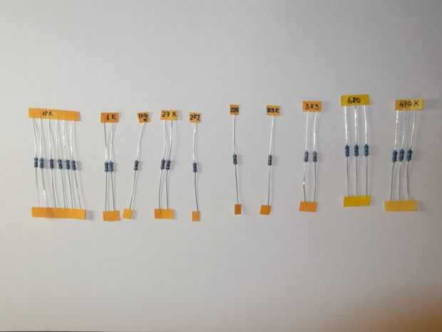 Es fácil cometer errores con estas resistencias codificadas por colores. Por lo que es mejor para identificar cada resistencia con un multímetro/ohmiómetro.