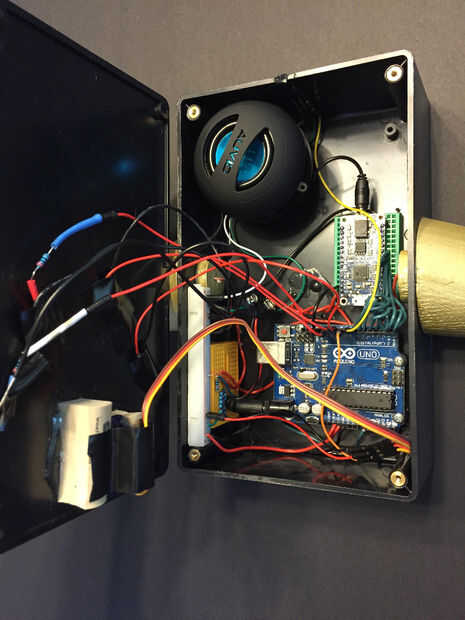 Al principio, la Junta de FX de sonido fue algo ardua para funcionar. Al final, la tarjeta de sonido FX funciona según lo previsto después de algún tiempo jugando con las piezas y el programa. Cada pin en la placa FX que utilicé fueron asociados a un pin del arduino individuales. Aunque había utilizado 6 pernos de FX de sonido, pude poner muchos clips de sonido por pin. Para más detallada información sobre el gran tablero ir a adafruit.com o
