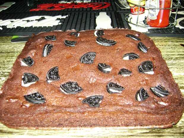 Así que decidimos hacer el brownie más grande siempre. No sé si tenemos éxito, pero no hay duda que tenemos bastante estrecha.