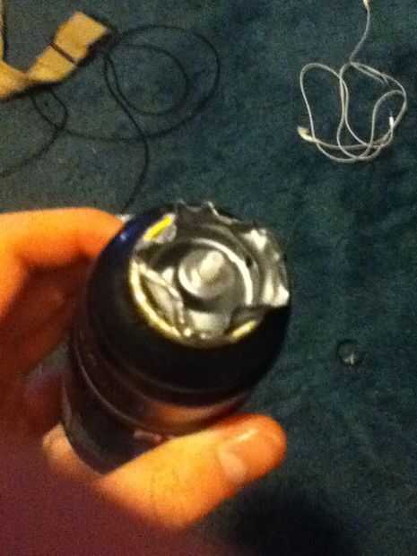 obtener una lata de aerosol.Paso 1: Axe Spray puede paso 2 Sacar la tapa.Paso 2: Axe Spray puede paso 3 Haz las pinzas y levante el borde de la plata.Paso 3: Axe Spray puede paso 4 Empezar a despegar el borde de la plata.Paso 4: Axe Spray puede paso
