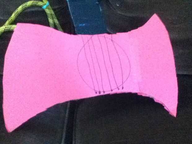 Inicio por cortar un cartón en forma de una cabeza de hacha. Ahora tienes el cuerpo, entonces su papel de construcción de la cinta sobre él.