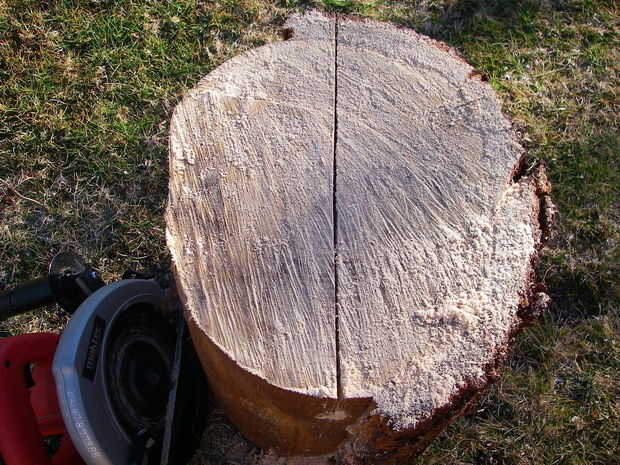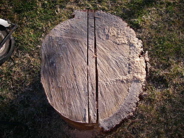1. hacer tres a cuatro pulgadas de diámetro profundo corte en la parte superior de su bloque usando una sierra circular o motosierra.