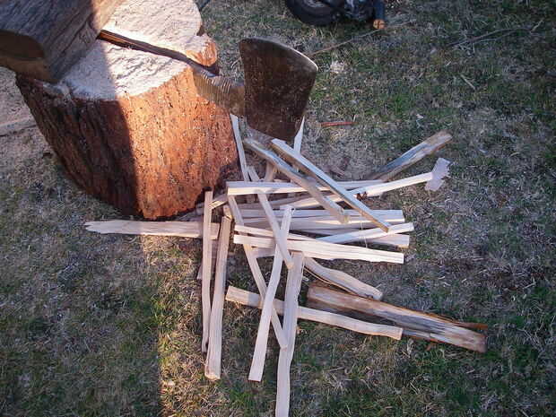 6. Coloque un extremo de la madera en el borde del hacha y martillo el otro extremo con un club de martillo o un mazo de madera para partir la leña. VOILA!!!!!!