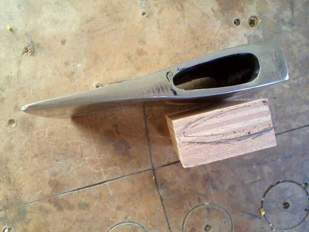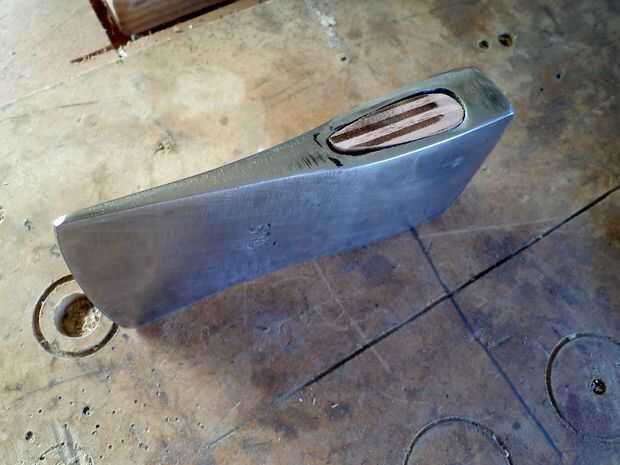 Hacer un pedazo de madera que encaja exactamente en la base del hacha. En esta pieza te Inserte un perno de la amor-menos a más adelante que los tornillos de la ranura en el lugar.