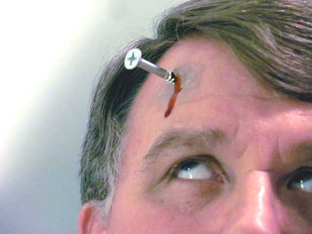 Aquí es cómo hacer ese traje. Usted puede tener un clavo o un tornillo o cualquier número de elementos 'empalar' en su cuerpo con esta técnica.