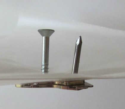 Para hacer el hardware de pie durante el proceso de pegado, nos vamos a poner un imán de tierra rara bajo cada poco de hardware. El magent se sostenga el hardware vertical y permitir que el pegamento con todo en la orientación correcta. Un pedazo de papel de cera se coloca bajo el hardware por lo que no se adhieren a la superficie.