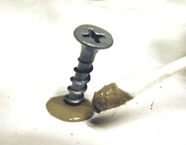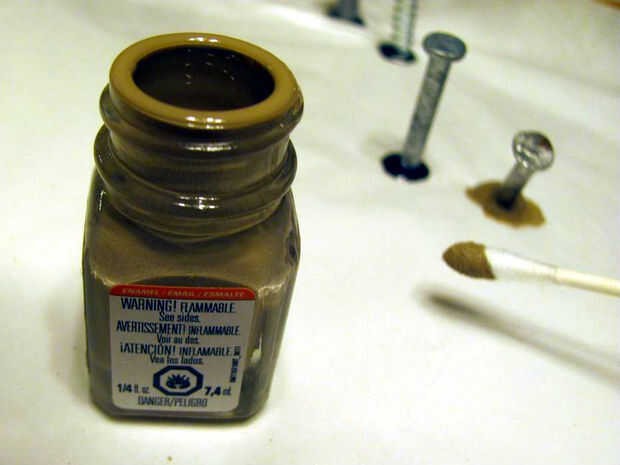 Después el epóxido puede pintar las bases de la cola para estar más cerca del tono de la piel. Usé esmalte de probadores (pintura modelo) porque era fácil de conseguir y estaba cerca de tono de la piel. (Tan plana; Pintura 1167-RM11671_0611, Fl.Tan)