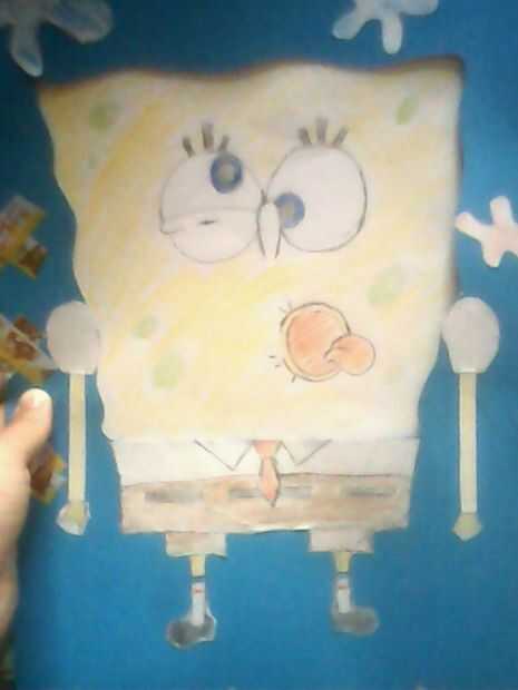 Mi hija hacia fuera creció su cama de bob esponja que le hice. así que decidí usar la cara para hacer una señal de venta que uno pierda conduce por el camino. todo que hizo fue añadir un tablero en la parte posterior de su boca y pintura venta de yar