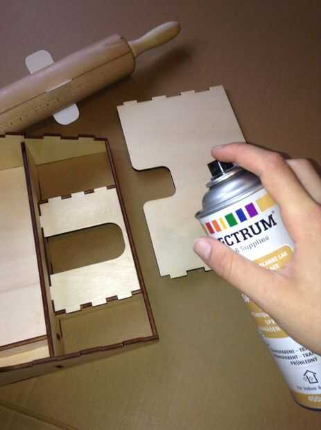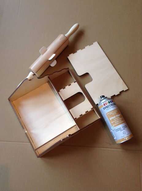 Queremos proteger la madera para hacer durar más tiempo y hacerlo más fácil de limpiar. Por lo tanto nos barniz todos los trozos de madera (la tapa, rampa y perno de balanceo). Utilizamos una clara capa de aerosol que seca rápido.