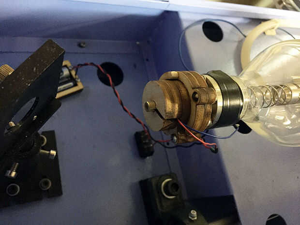 El láser visible raramente se alineará exactamente con el láser de trabajo para utilizarla como referencia. Si marca la cinta con el láser de trabajo podría encontrar que el láser visible es 1/2" a un lado o el otro. Como usted tuerce sus tornillos espejo ver el láser visible y medir su distancia para ayudarle a conseguir templó para arriba.