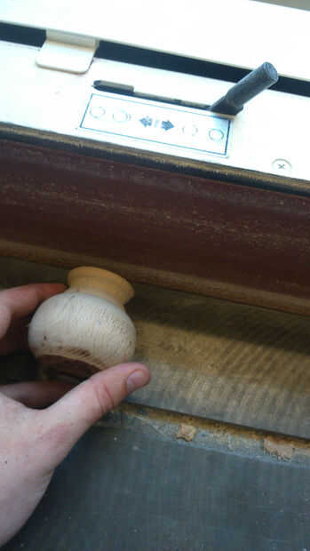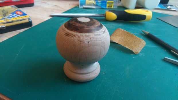 Para la manija comenzamos eligiendo la mejor forma de un mango. Utiliza la pata de una silla, que se puede encontrar en un centro de ocio local.