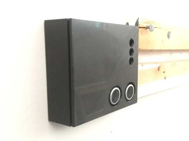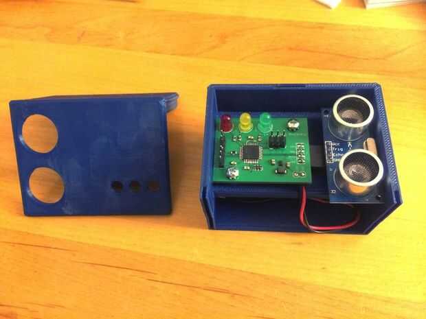 Puede utilizar los archivos STL suministrados para imprimir un recinto adecuado, o diseñar su propio. Las fotos muestran algunas versiones anteriores del caso. La versión actual utiliza un diseño de lado a lado en lugar de tener la batería apilada debajo de la Junta. La tapa se encaja a presión sobre el uso de imanes de neodimio pequeños.