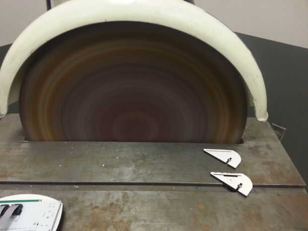 Usar la lijadora de disco en techshop para quitar unos 2mm de espesor de madera para que LCD ras de la superficie del panel.  Yo corte una pequeña capa a la vez y pruebe el ajuste para asegurarse de que no exagere. El uso de la lijadora de disco de alta velocidad permiten fácil y suave, precisa eliminación de facción de mm capa de madera fina.