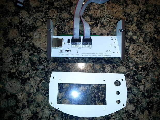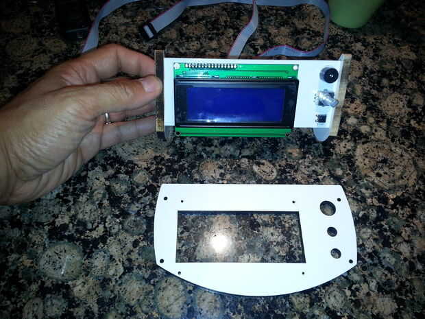 Al montarlo, montar primero el tornillo de ranura en T 2.  Cuando está bien en su lugar, pondría pegamento caliente a lo largo de la interfaz LCD madera panel y soportes.   Me aflójelas y poner la hotglue el panel LCD y el interfaz LCD PCB.