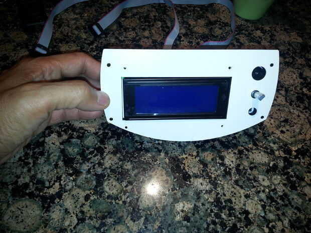 tamaño del agujero, espacio y ubicación.  Cuando esté todo hecho, pretendo diseñar etiqueta engomada del color y hacer esta Corel Draw para cortar el perímetro y LCD apertura.  También le puse pegamento caliente alrededor de la pantalla LCD y el panel.
