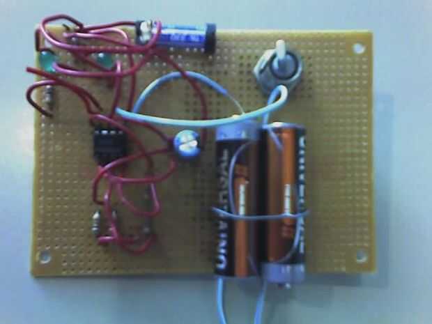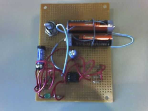 Lista de partes: alambre, (AA, AAA, C, D o 9V) baterías, interruptor, relé, LED, chip de temporizador de NTE955, k resistencias de 1, 5 resitors k, resistencia de 4 k, condensador de 100uF, clip de batería o sostenedor del paquete de batería, tarjeta de circuitos.