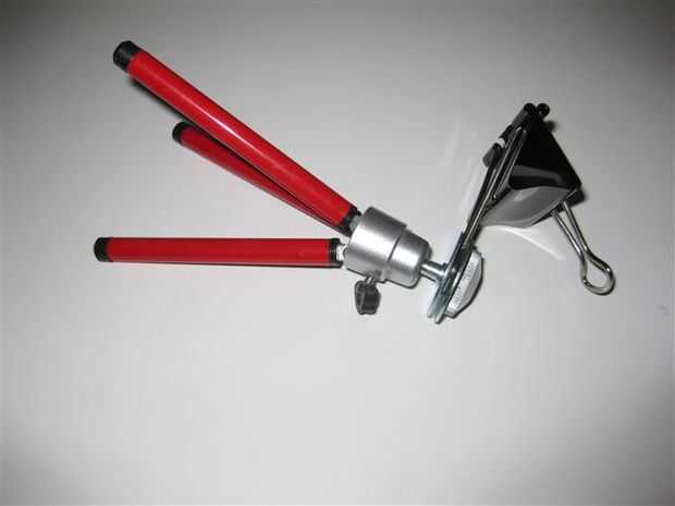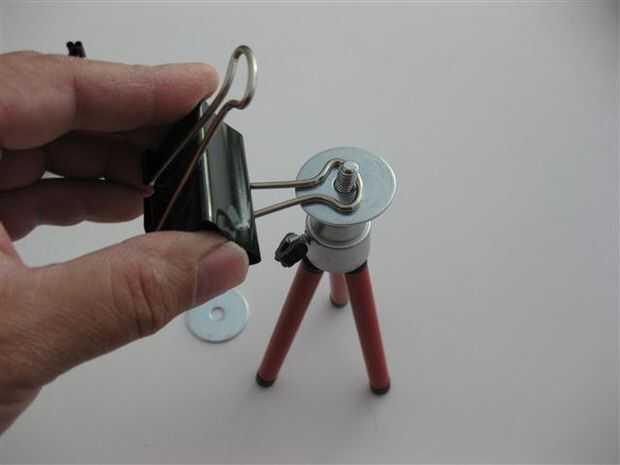 Ayudando a mano de mini trípode Binder clip (2 / 4 paso)