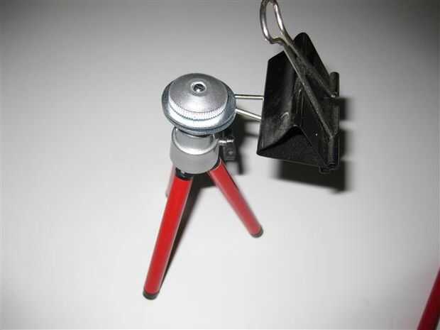 Ayudando a mano de mini trípode Binder clip (3 / 4 paso)